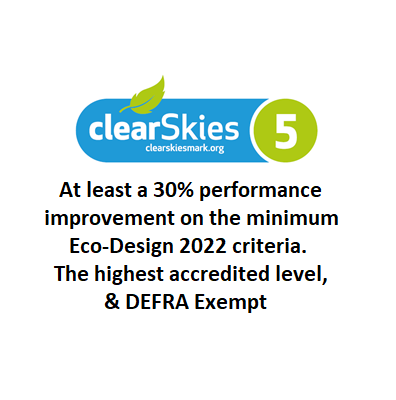 The Aire 5 is a revolutionary, new, wood-burning stove with an oversized window design that maximises your view of the fire. Its minimal design comfortably fits into virtually any interior space whether it be freestanding or within a traditional fireplace hearth. It’s manufactured out of boiler plate steel and comes with a cast iron door and top, and a ‘warm-to the touch handle for safe and easy loading.