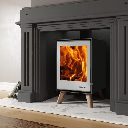 The SAfire Heeta 950 Oakley Wood Fireplace showcases an exquisite blend of vintage charm and modern elegance, thanks to its retro-style solid oak wooden legs. Complementing this classic design, the Oakley’s streamlined outer casing features 3cr12 stainless steel fluted panels, promising to be a conversation starter in any setting. Beyond its aesthetic appeal, this fireplace provides a heartwarming wood-burning ambiance, ensuring years of cozy comfort. Measuring 910mm in width, 745mm in height, and a depth of 480mm, it boasts a heating capacity of 400m³. Weighing in at 140kg, it delivers an impressive output between 12kW and 16kW. Choose the SAfire Heeta 950 Oakley for a perfect blend of style, warmth, and durability.