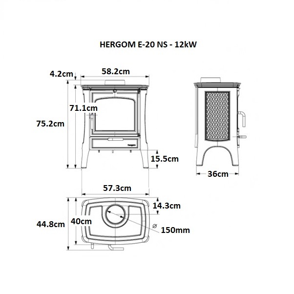The E-20-NS is part of the Hergom Classic Series Range. It features a traditional design, with a ‘modern twist’; decorative side panels and large L-shaped handles. The E-20-NS has a high quality, cast iron finish that optimizes heat transfer with durability. There are 2 doors; one is a separate door for easy removal of the ashpan.