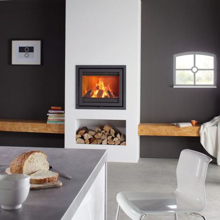 The Orleans insert fireplace has a modern, flat-top design with straight, clean lines and a large glass viewing window. This insert heats your home without taking up your living space. It is suitable for heating a medium-sized living area. Imported from Europe, boasts a strict CE certification and comes with a 5-year limited guarantee.