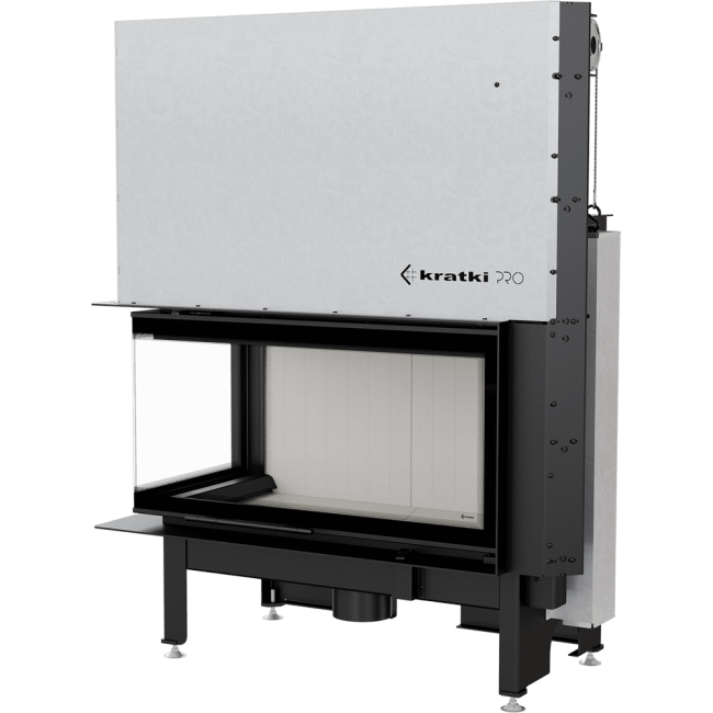 The Nadia 14 PBSG is a large sized corner fireplace with rise-and-fall glass door. This glass door offers an amazing view of the fire. Luxurious, modern and with refined attention to detail, this fireplace will become the centre piece of any space. The combustion chamber is lined with Kratki’s signature heat intensifying ceramics.