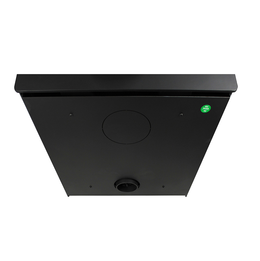 The combustion chamber is lined with vermiculite firebrick and comfortably loads 45cm logs. There is a vermiculite flatbed for burning wood with no need for an ashpan. The removable baffle plate has both a steel and vermiculite layer for extra durability and heat radiation. There is also an option to connect to an external air source. The rear of the stove features a convection panel. Included is a glove for opening the door and adjusting the air lever, and an instruction manual.