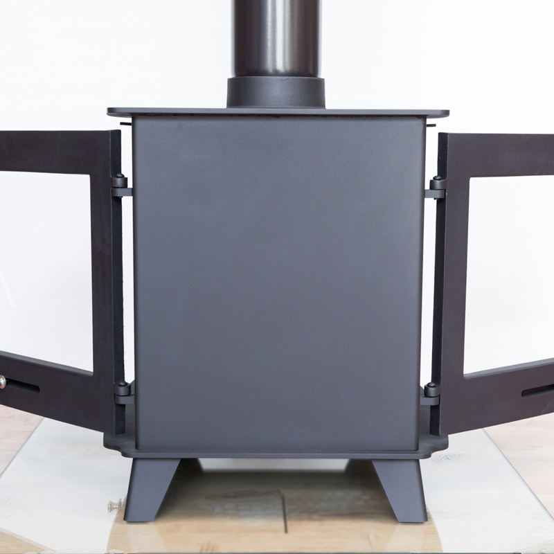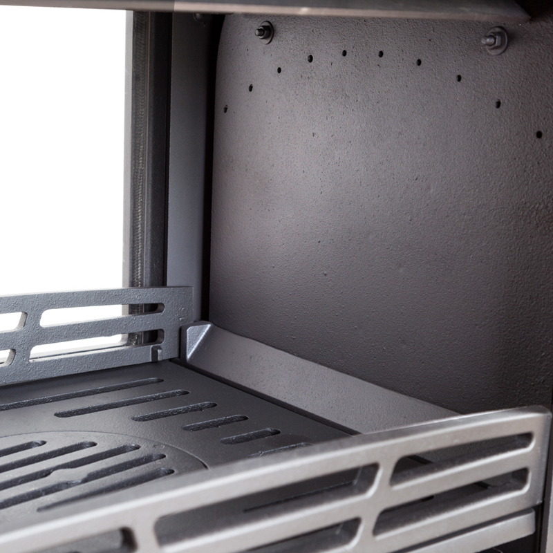 The Northern Flame Ecosy+ Azar Double-sided is a large, heavy duty, multi fuel fireplace with a very big window; cast iron doors; a 10mm thick steel top and 5mm thick steel sides. Its contemporary design is finished off with polished chrome handles and air control levers.