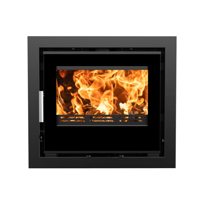 The Golnar 50 Insert is an Eco-design ready, multi-fuel fireplace that combines modern style with high-efficiency performance. Its door features a large glass window framed by a thin, black, steel border offering an elegant view of the flames.