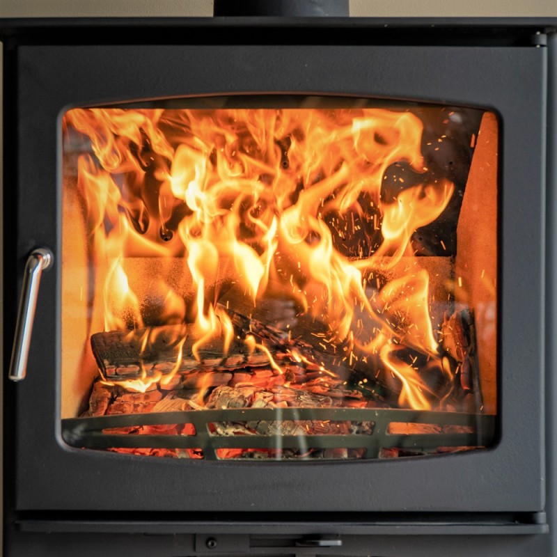 The Northern Flame Ecosy+ Panoramic boasts a minimalist design with a polished steel handle. The air controls are situated under the bottom ash lip which allows for a larger window and a maximised view of the fire. Its output range is between 3.6-7kW.