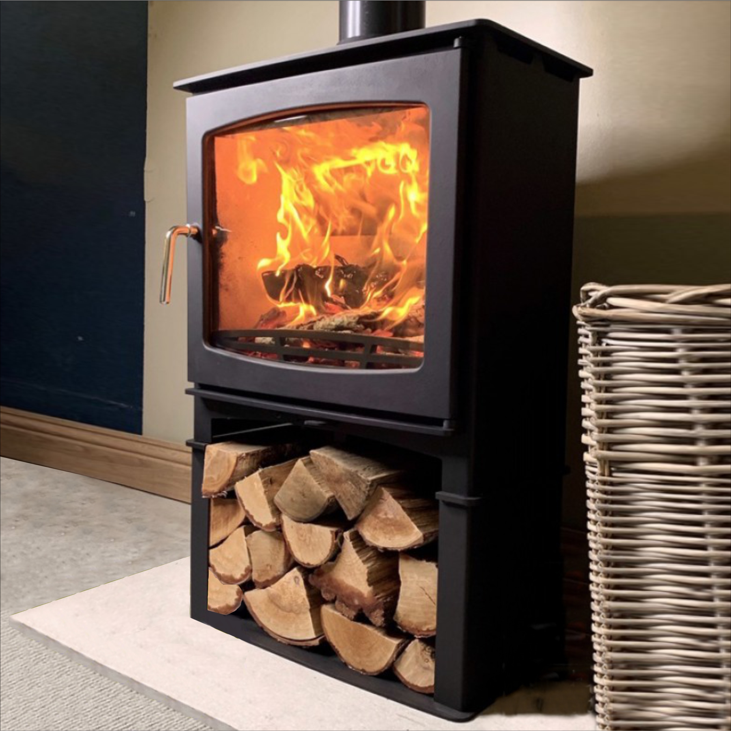The Northern Flame Panoramic 5 boasts a minimalist design with a polished steel handle. The air controls are situated under the bottom ash lip which allows for a larger window and a maximised view of the fire. Its output range is between 3.6-7kW.
