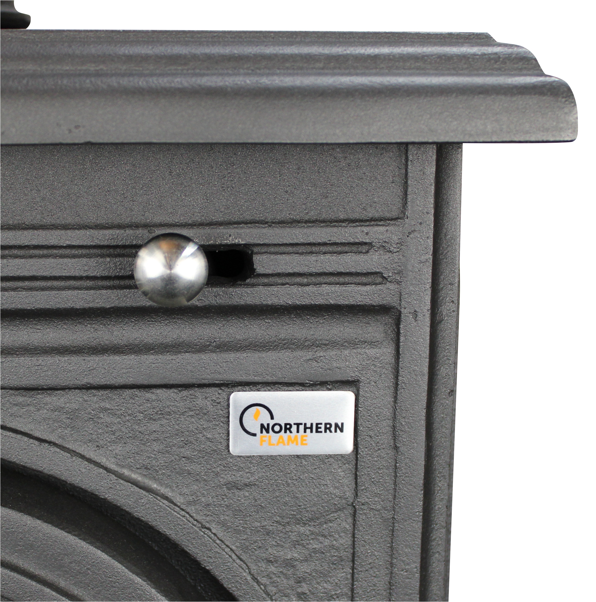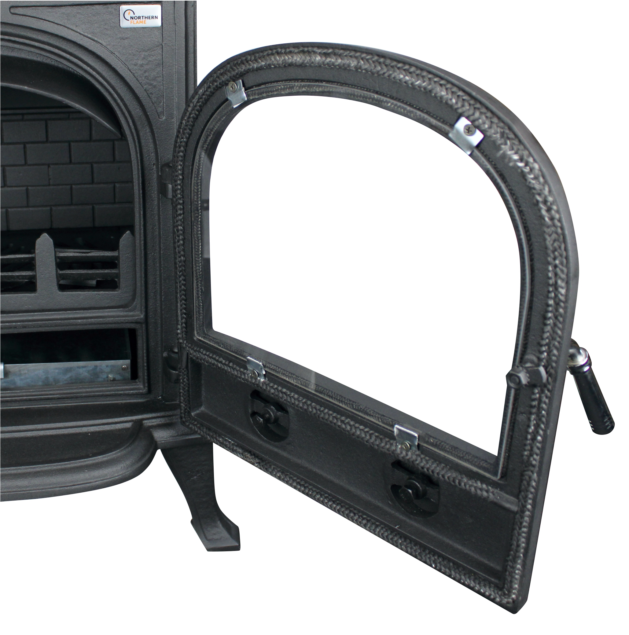 The Northern Flame Tarsa is a medium to large sized fireplace that features a traditional design with a modern edge. It’s a multi fuel fireplace manufactured out of pure, thick, Australian cast-iron. The cast iron is top quality and durable and is not produced from recycled or excess materials. It features a cast iron door, body and a thick, cast-iron top which radiates heat long after the fire has dimmed down