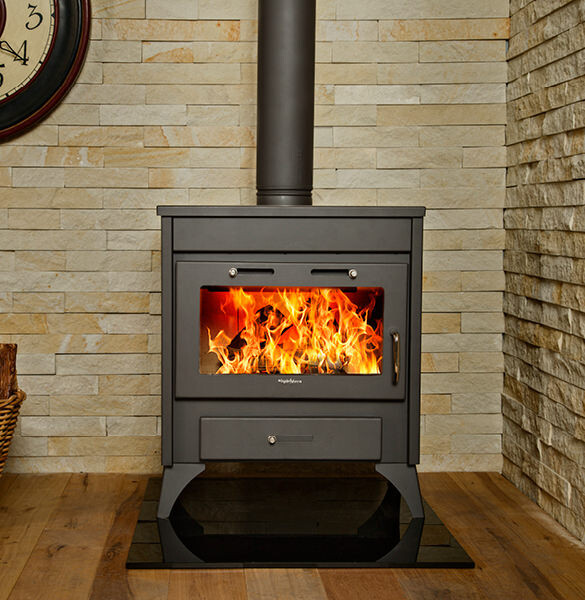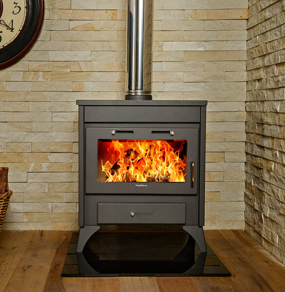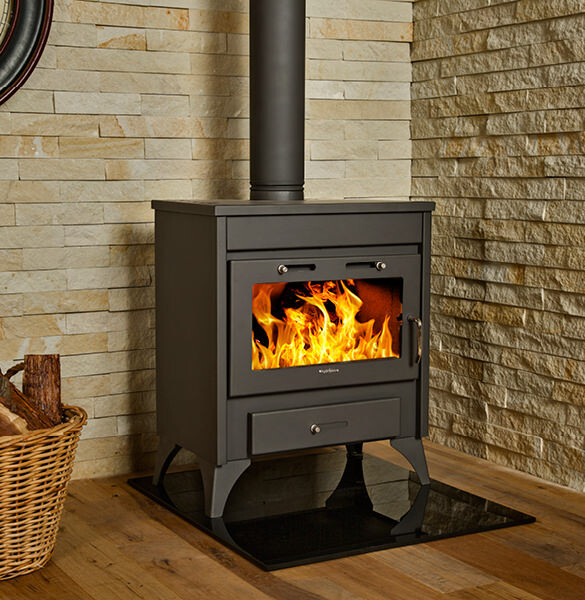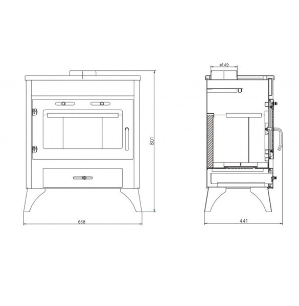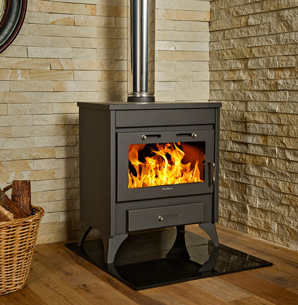 Big on kilowatts and light on wood, this impressive boiler stove fireplace is crafted from the sturdiest steel and makes light work of heating a medium to large home.One of our most popular models, don’t settle for efficiently and economically heating the room in which this freestanding unit is installed when you can use it to heat the entire house. The water jacket – a cavity in the fireplace walls into which cold water can enter and hot water can exit – absorbs heat from the combustion chamber to warm up the water, which is then circulated throughout the house to one or more radiators so that no room is left cold. You can even heat up your hot water and save on electricity with the addition of a simple heat exchanger.Boiler Output = 5kW – 11kW. All our fireplaces are imported from Europe and boast a strict CE certification, so you know you can rely on the quality of any unit you purchase from Hydrofire. Just to ensure you sleep well at night, they come with a 2 year warranty too.