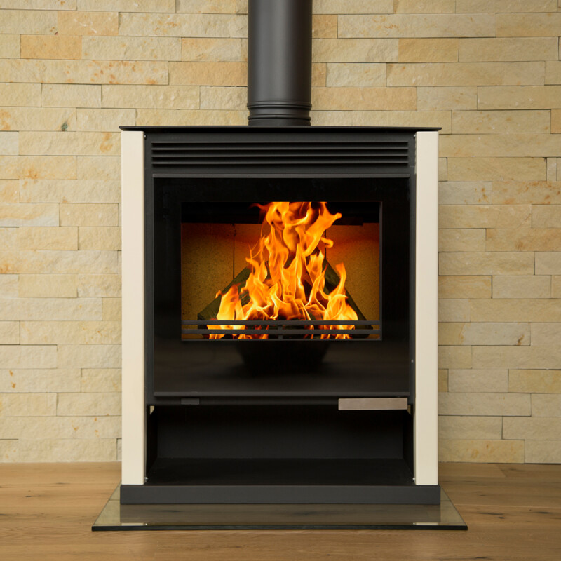 The Rubin Lux Ivory White is a freestanding fireplace for modern indoor-living.The fireplace is made from steel, a stylish and reliable material that ensures wood burns efficiently. With an average of 13kW of power produced, it is ideal for medium-large spaces of up to 160m². It is light on fuel, providing 75% efficiency. The large combustion chamber can accommodate long logs so that you can build a blazing fire that lasts for many hours. Aesthetically, the Rubin Lux has an elegant black frame-less glass door with striking side panels that comes in three colours: Ruby Red, Ivory and Black. Choosing to stay warm has never been easier, thanks to the elegance and functionality of the Rubin Lux range.This fireplace is SIA 2022 Ecodesign Ready and are designed to reduce PM emissions by burning wood more efficiently and completely.For your peace of mind, our steel fireplaces are backed by a two-year limited warranty.Internal Combustion Chamber W x D x H :57cm x 30.5cm x 40cm
