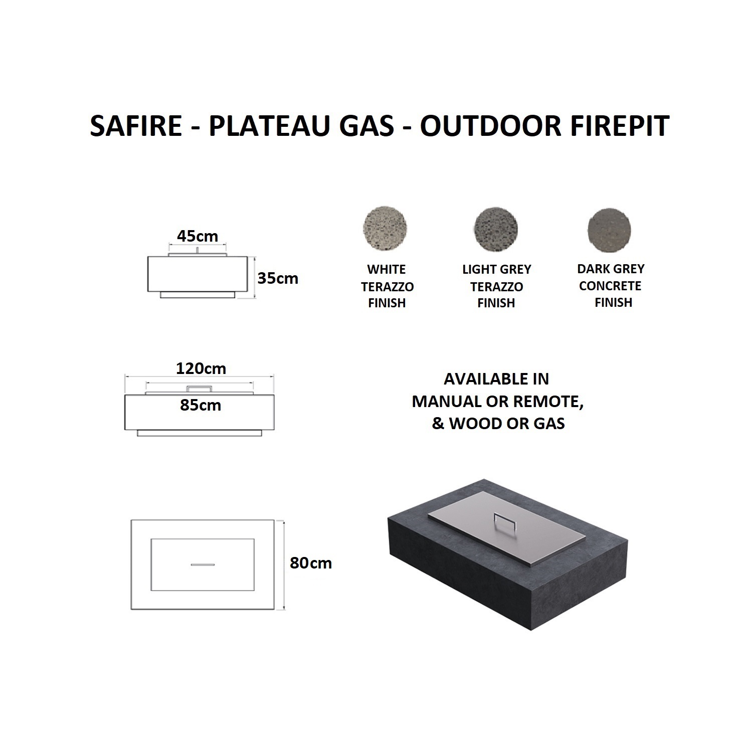 The SAFire Plateau Gas is a freestanding, gas firepit with a minimalistic, contemporary design which makes it easy to pair with both a modern and traditional design setting.