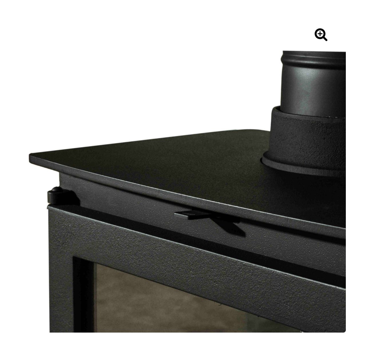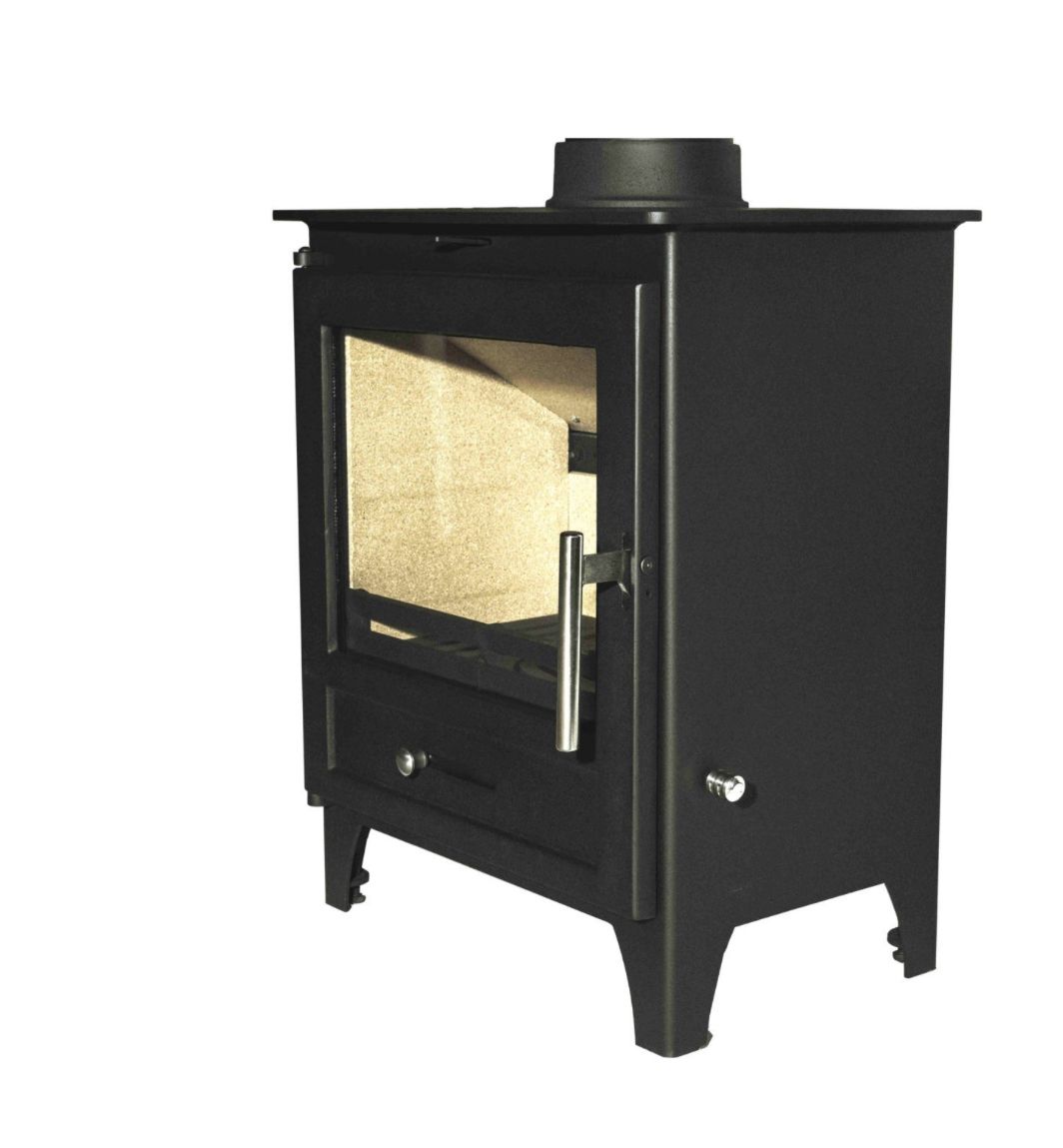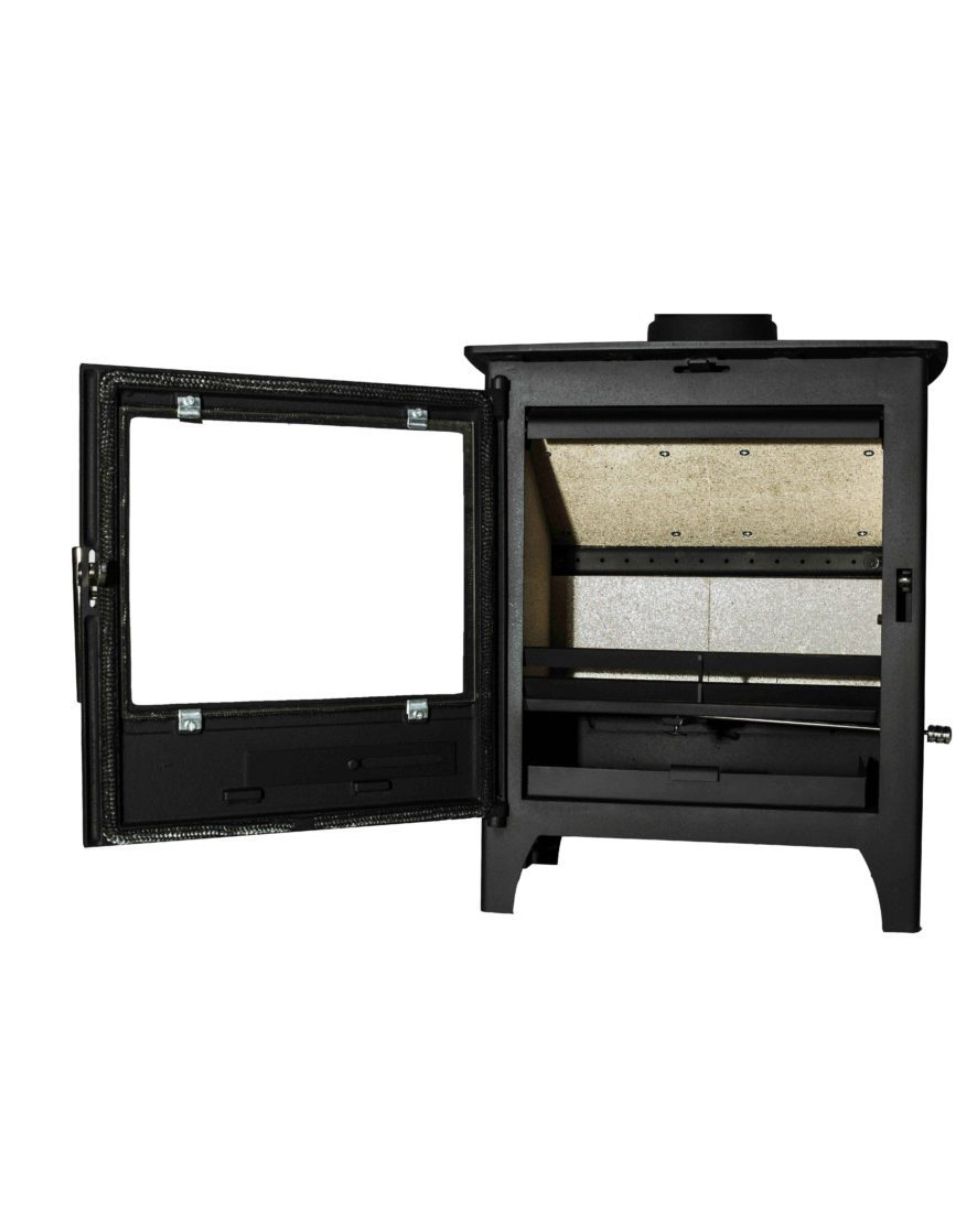 Output: 6Kw Heating Capacity: 220m³ Size: 560mm(h) x 480mm(w) x 365mm(d) Flue Outlet: 125mm pipe – Top & Rear flue outlet, Rear flue centre height – 460mm