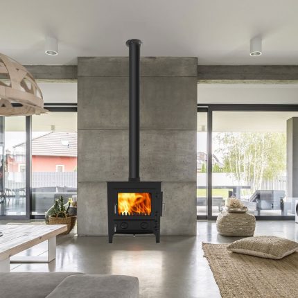 Output: 10Kw Heating Capacity: 380m³ Size: 620mm(h) x 520mm(w) x 450mm(d) Flue Outlet: 150mm pipe – Top & Rear flue outlet, Rear flue centre height 490mm
