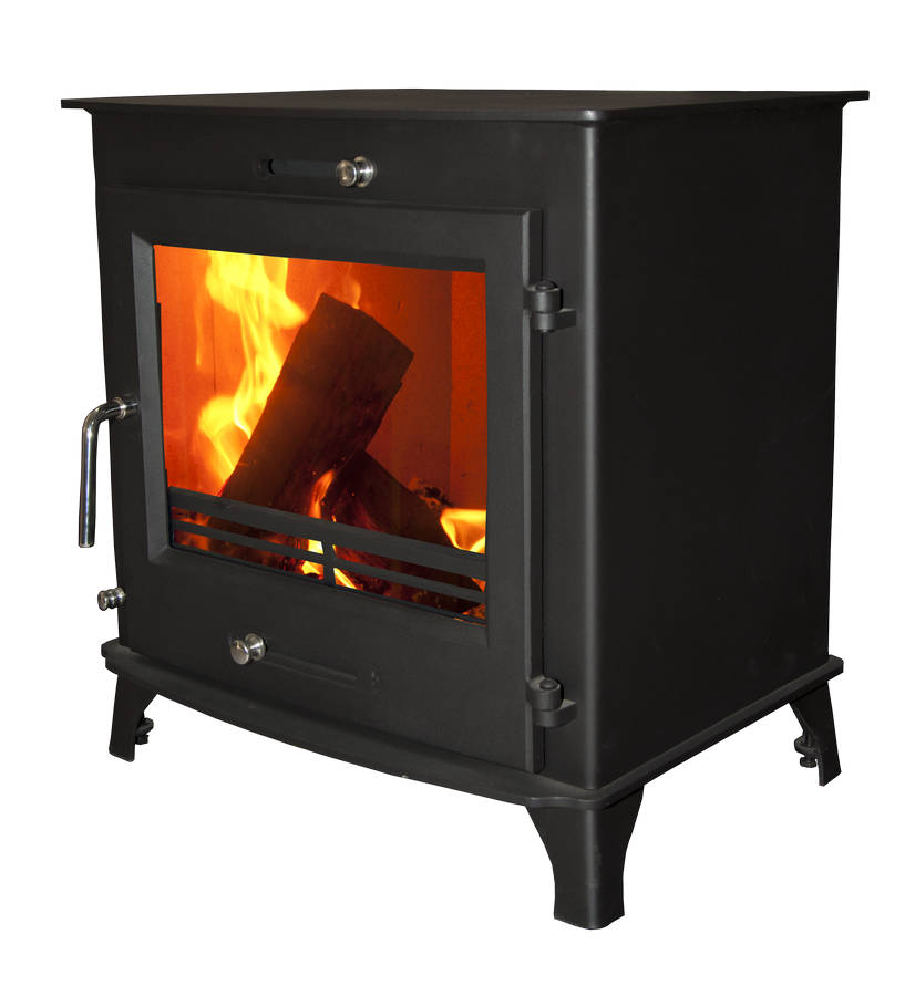 Sentinel Ottawa Square 12 freestanding fireplace with 12KW output, cast iron / steel construction, multi fuel performance, and a practical heating design.