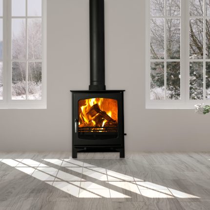Output: 12Kw Heating Capacity: 450m³ Size: 850mm(h) x 584mm(w) x 420(d) Flue Outlet: 150mm pipe – Top & Rear flue outlet, Rear flue centre height 730mm